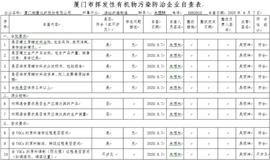 廈門(mén)市揮發(fā)性有機(jī)物污染防治企業(yè)自查表(2020年第二季度)
