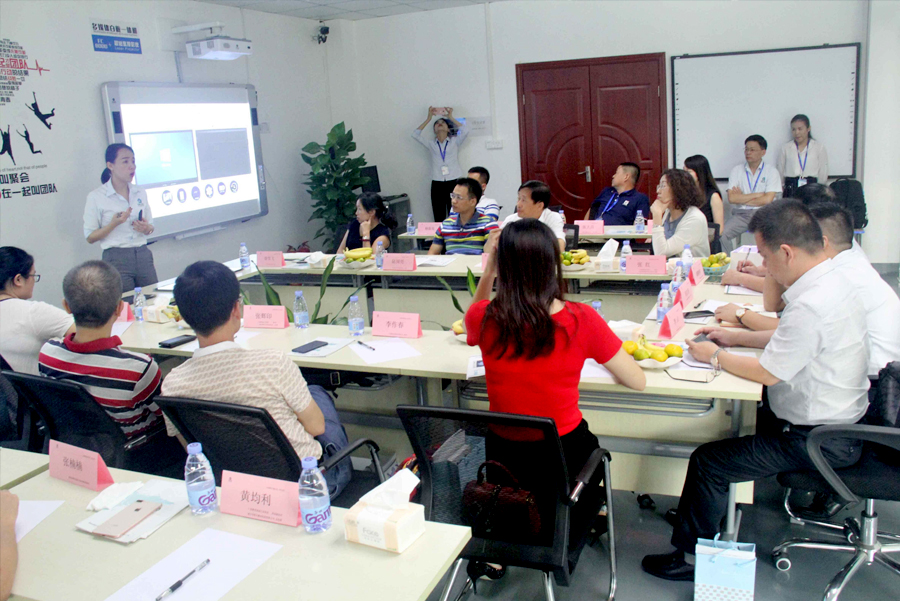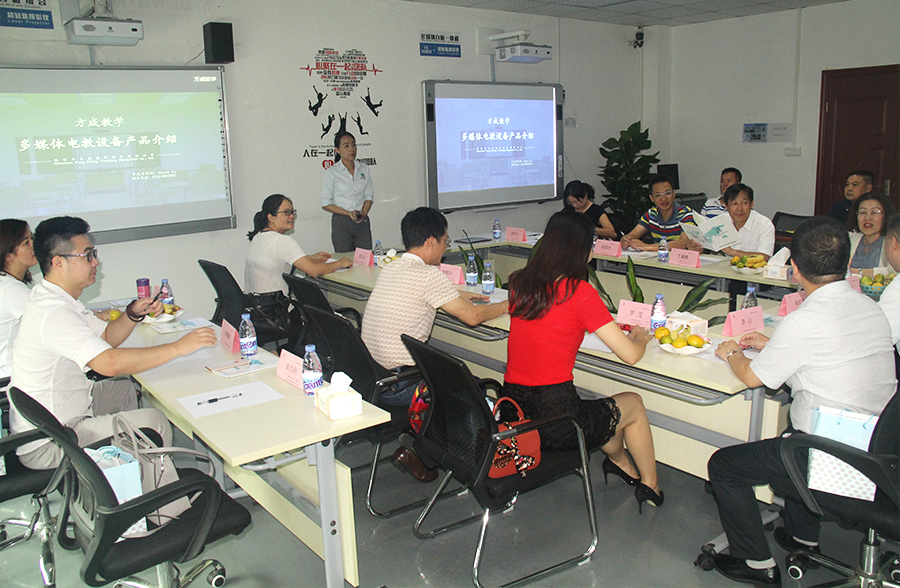 參觀期間,各位領(lǐng)導(dǎo)認(rèn)真聽(tīng)取我們美女講師對(duì)方成教學(xué)一系列硬件產(chǎn)品的講解,其中包括壁掛一體機(jī)、交互式電子白板、白板一體