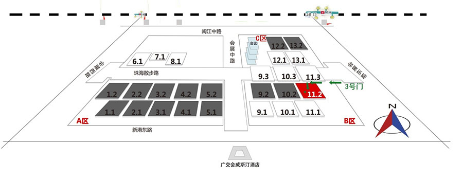 通過地下通道可直達(dá)廣州琶洲國際會展中心C區(qū):